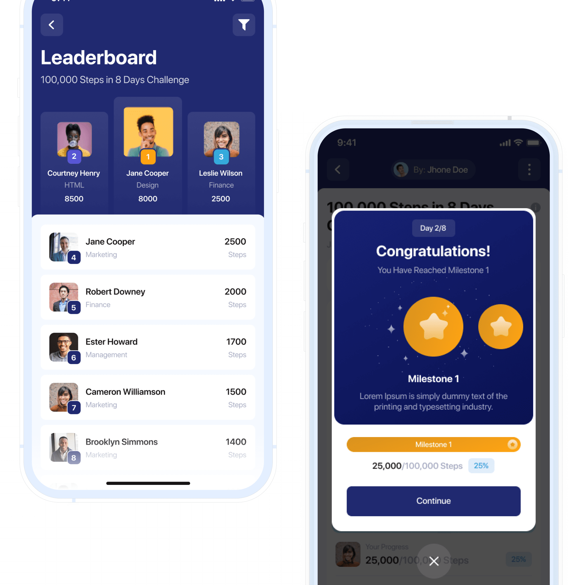 Gamify fitness with flexible step challenges: HR-led company-wide or specific team-led, complete with dynamic leaderboards to encourage friendly competition.