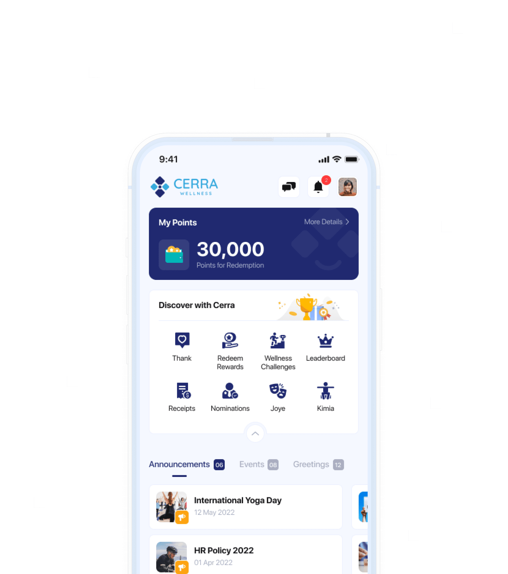 CERRA Wellness is our exciting corporate wellness platform that's your partner in cultivating a fitness culture within your organization. Promote health and productivity with point-based rewards that get everyone moving!