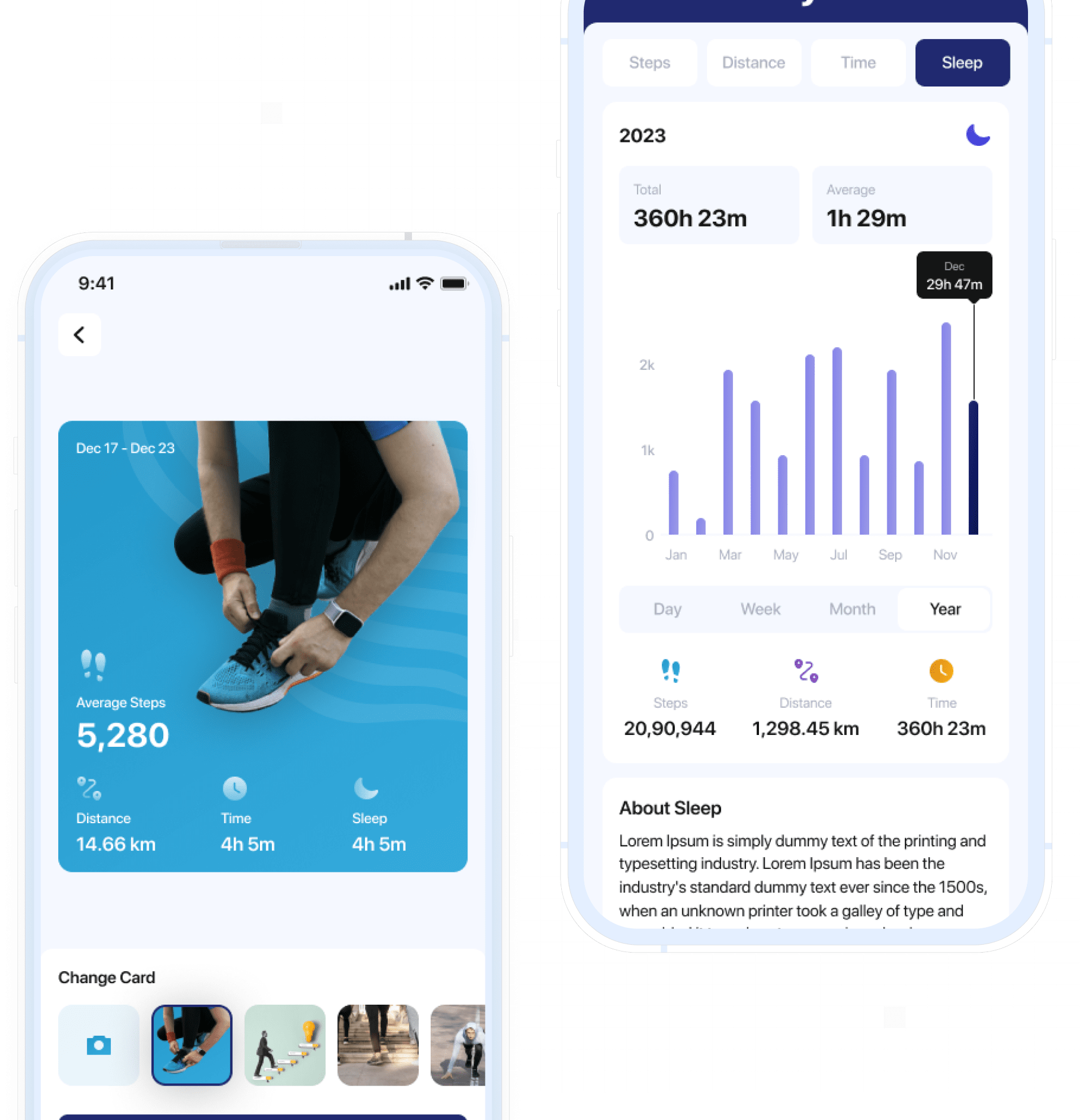 Easily track all daily, weekly, monthly and yearly activities in one dedicated app section. You can also flex your progress across other platforms.